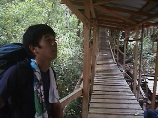 屋根付きの木道