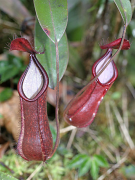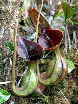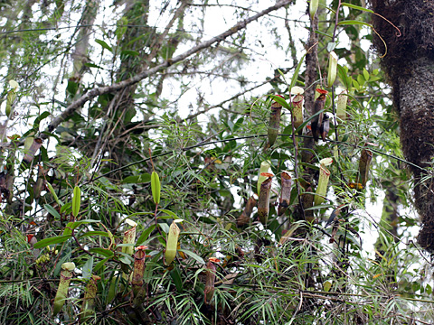 Murud 2-3 [1][2][3] N.murudensis N.murudensis 木に絡まるN.lowii N.lowiiの蓋の裏には沢山に蜜を分泌し、虫をおびき寄せる 竹に絡まるN.muluensis