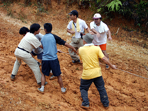 Extra2 [1][2][3][4] Murudの美味しい水を飲む佐藤君 Church Camp裏のゴミ捨て場 Bakelalan空港の滑走路で寝る犬 毎晩こんな感じ! ゴキブリの奇襲にもんどりうって椅子ごと転げる佐藤君 空調室外機の数。。。 ジープをロープで引き上げる 茶色に見えるのは林道だ コックピット 蛇行した濁った川