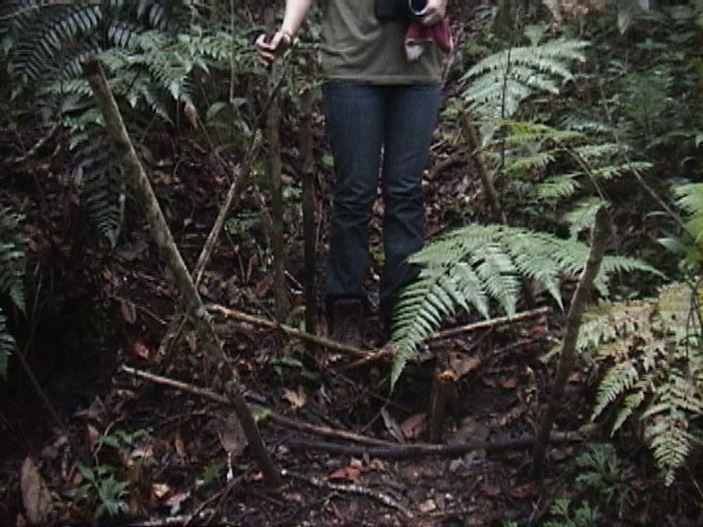 道は45度以上の急な登りで、枯葉に覆われているので、登り難い。